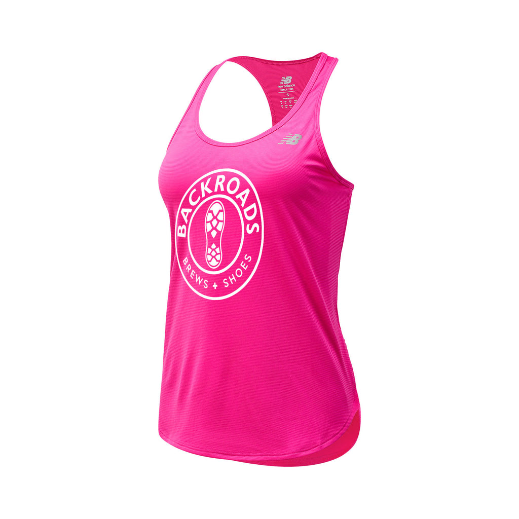 New Balance Accelerate Singlet featuring the BackRoads logo.