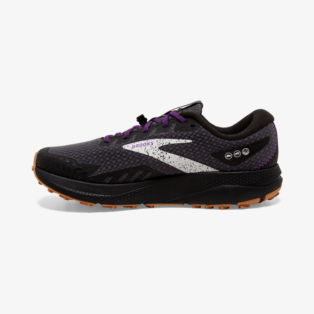 Designed for comfort on roads or trails, this light-trail running shoe for women features strategically placed waterproof materials for weather-resistant protection no matter where you run.