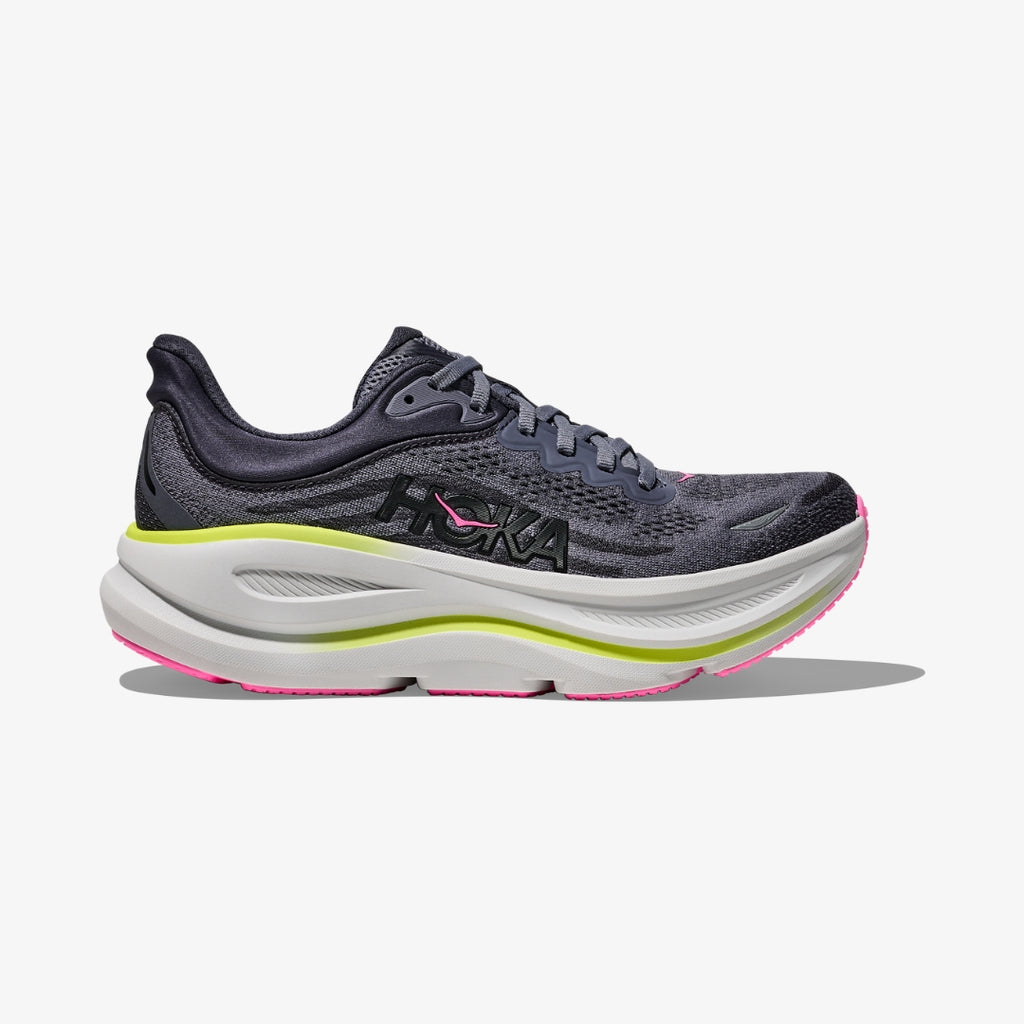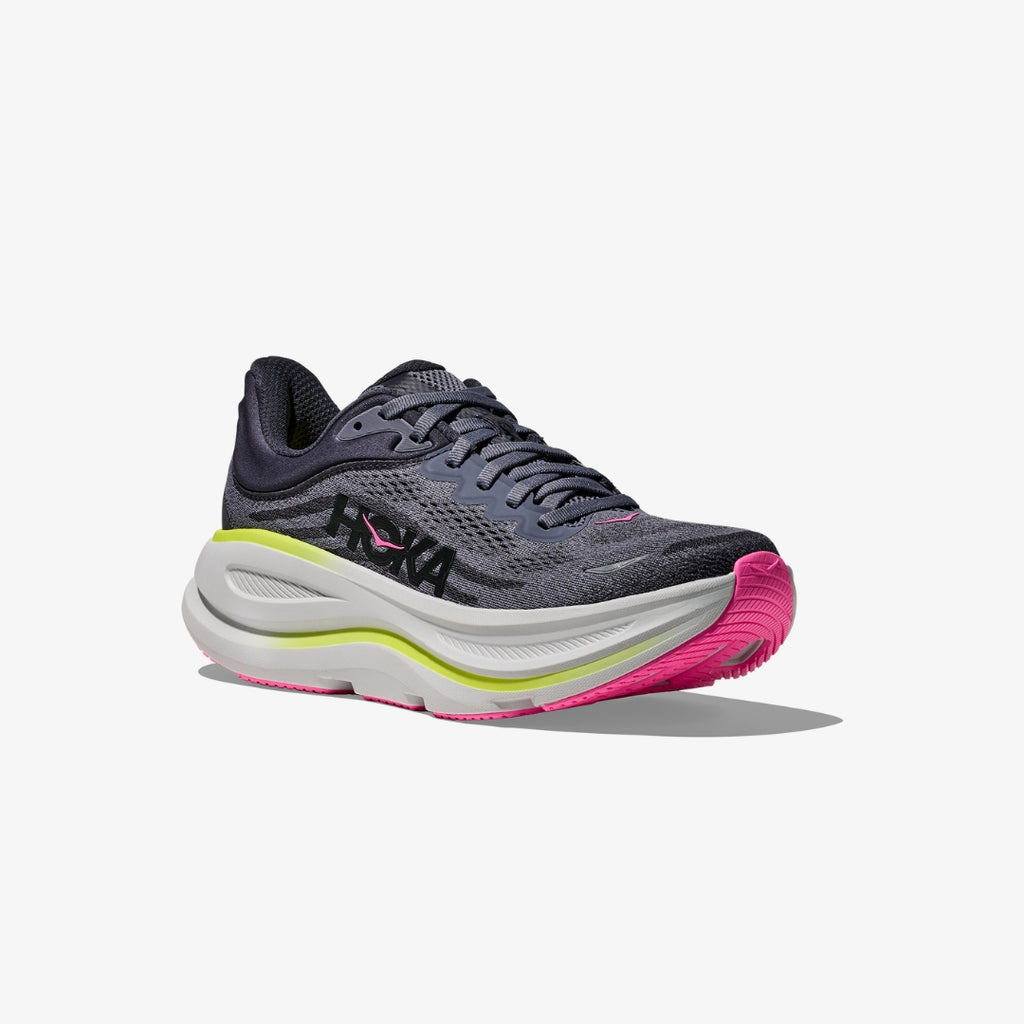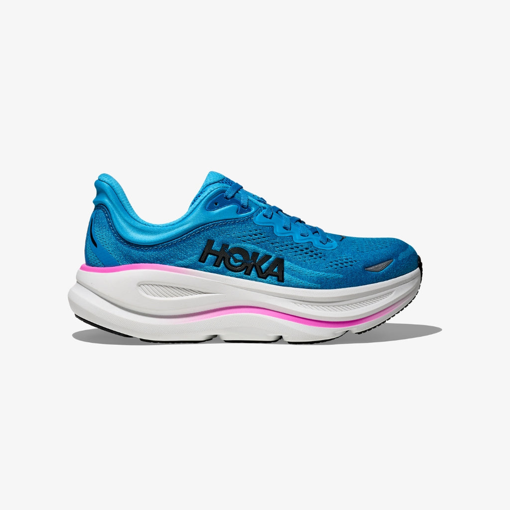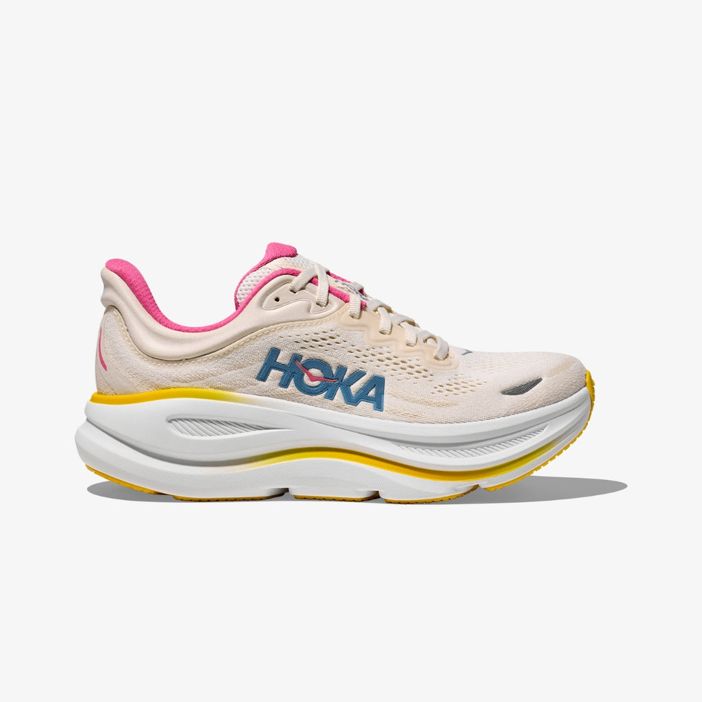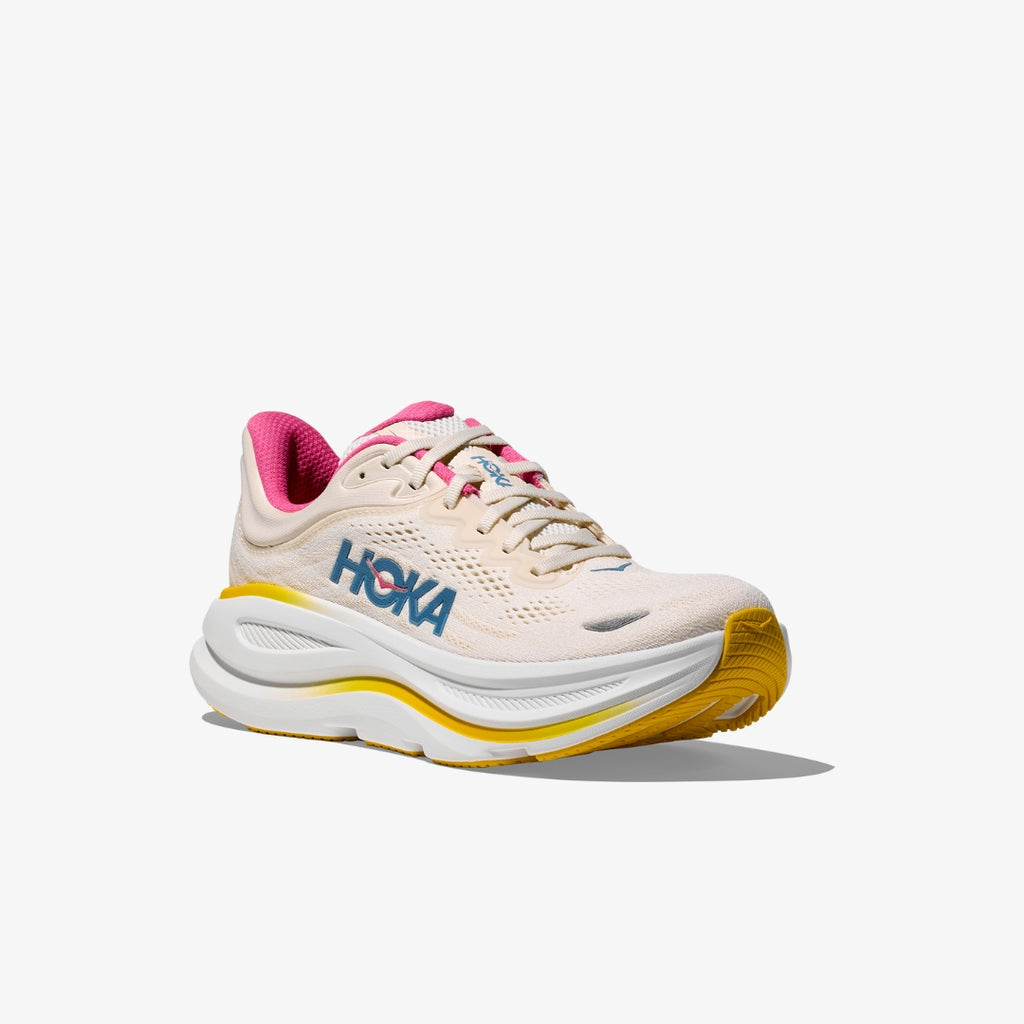 One of the hardest working shoes in the HOKA lineup, the Bondi 9 delivers peak plushness for everyday miles. Overhauled from top to bottom, we’ve increased the stack height and added a new premium foam midsole to deliver that soft, resilient ride that’s become synonymous with the Bondi. Elevated with a 3D molded collar and structured knit upper with zonal breathability, this ultra-cushioned cult favourite has been finished with Durabrasion rubber to combat high wear zones.