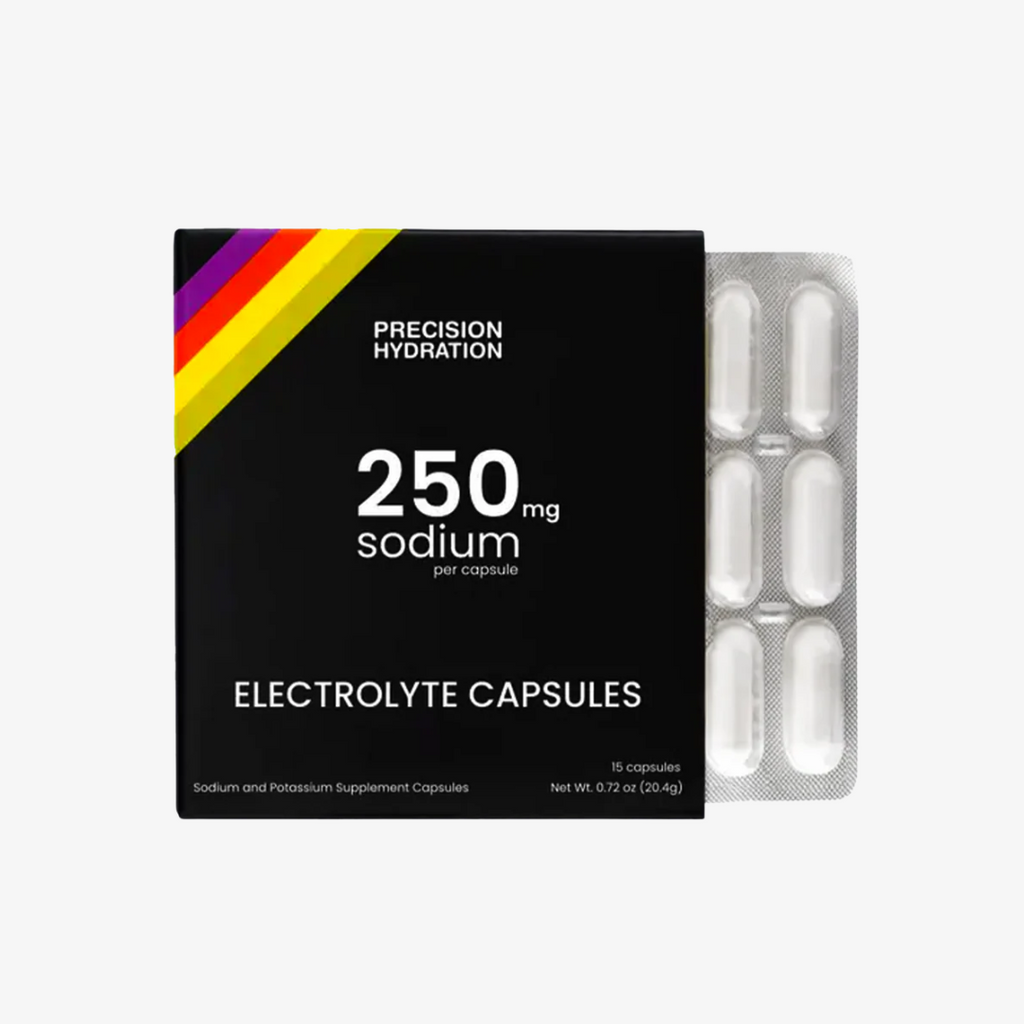 Hydration tabs are also known as electrolyte tabs, because that’s what they are – tablets containing electrolytes like sodium and potassium that your body needs to be properly hydrated. These electrolytes are also found in sports drinks, often alongside carbs and sugars which help fuel your exercise. Tabs just have the electrolytes, no carbs or cals, so they’re purely for hydration. Drop one in water, let it fizz for a couple of minutes, then glug it down.
