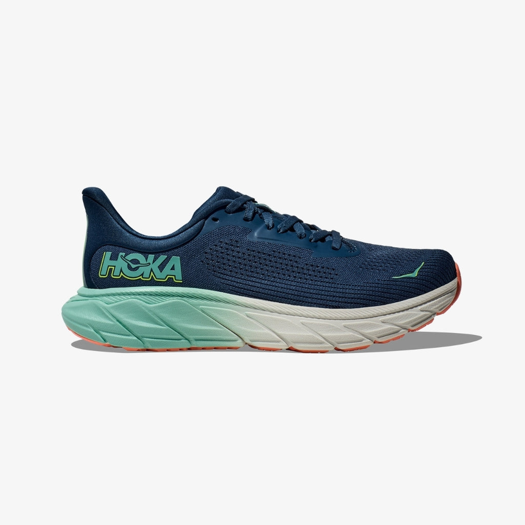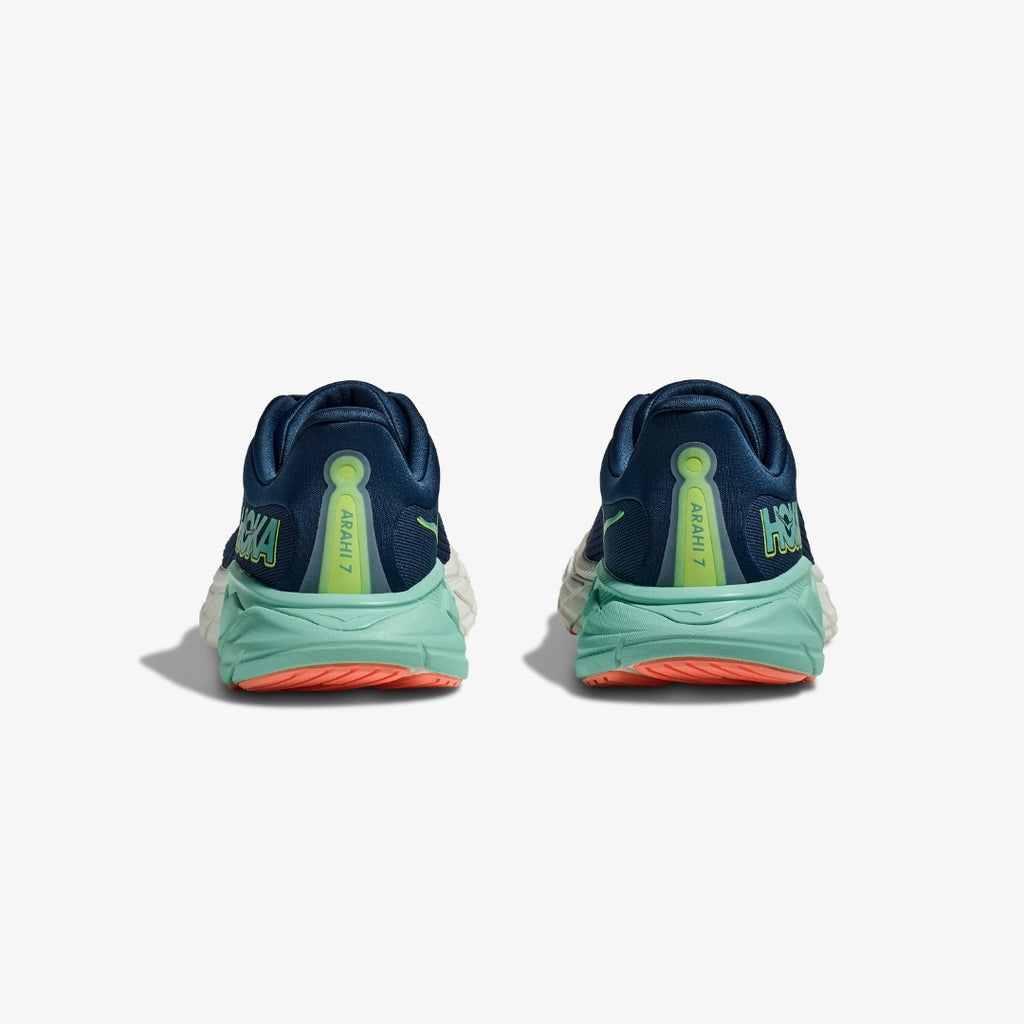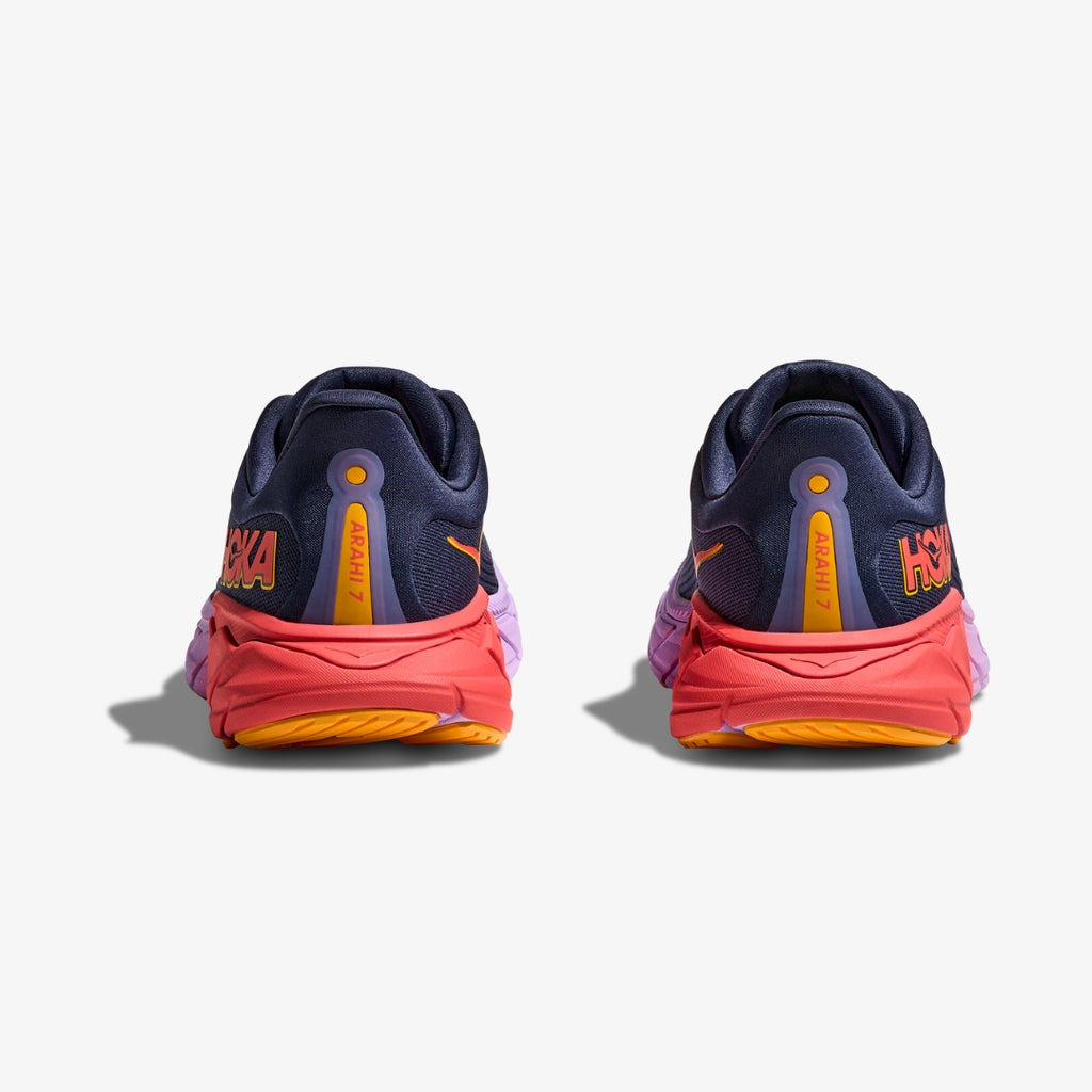 A surprisingly sleek stability shoe. Not your average stability shoe, the new Arahi 7 delivers the same streamlined support as its predecessor with our patented J-Frame™ technology designed to prevent excessive inward roll, or overpronation, without overcorrecting your gait. The Arahi 7 is designed to provide protective cushion while maintaining a responsive toe-off for when you want to go faster. Updated with a zonally engineered, flat knit upper for improved midfoot lockdown, we’ve fine-tuned the fit with a plusher tongue, and a stretchy dual gusset beneath the lace line to help mitigate tongue migration.