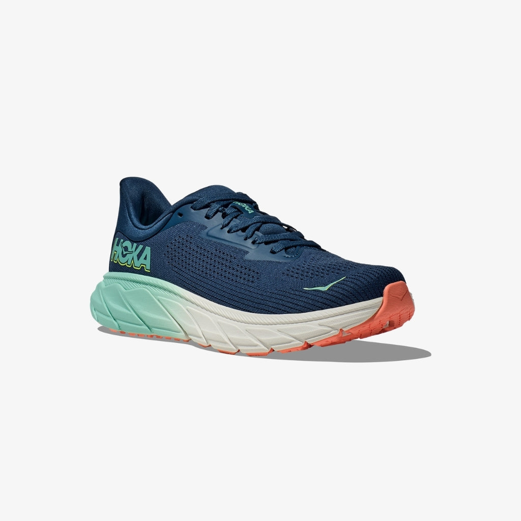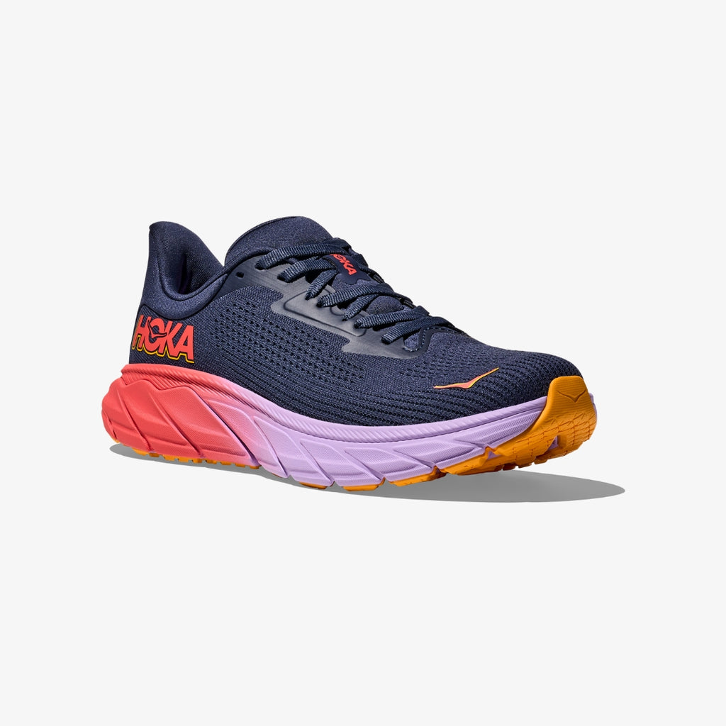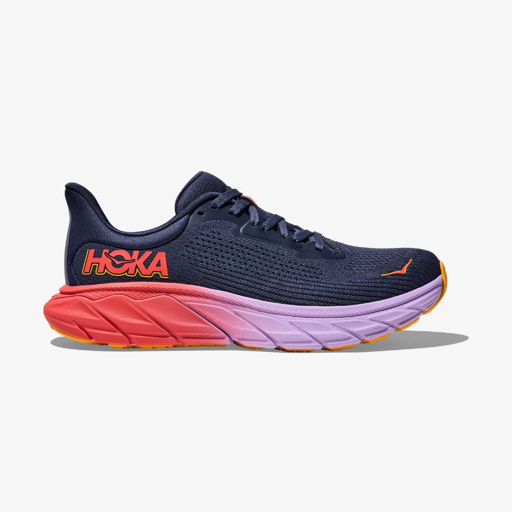 A surprisingly sleek stability shoe. Not your average stability shoe, the new Arahi 7 delivers the same streamlined support as its predecessor with our patented J-Frame™ technology designed to prevent excessive inward roll, or overpronation, without overcorrecting your gait. The Arahi 7 is designed to provide protective cushion while maintaining a responsive toe-off for when you want to go faster. Updated with a zonally engineered, flat knit upper for improved midfoot lockdown, we’ve fine-tuned the fit with a plusher tongue, and a stretchy dual gusset beneath the lace line to help mitigate tongue migration.