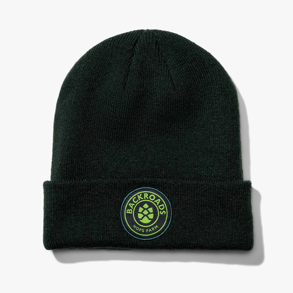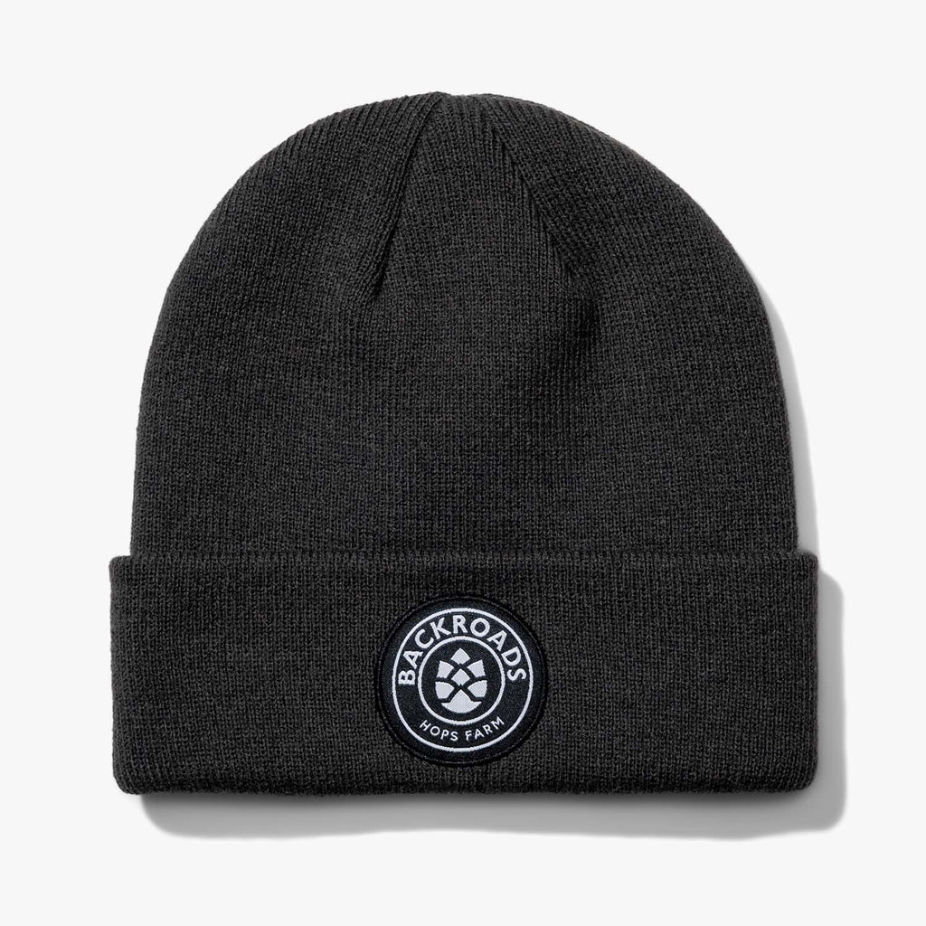 Stay warm and look good in our BackRoads Hops Farm Knit Beanie. Featuring the BackRoads Hops Farm woven embroidery.