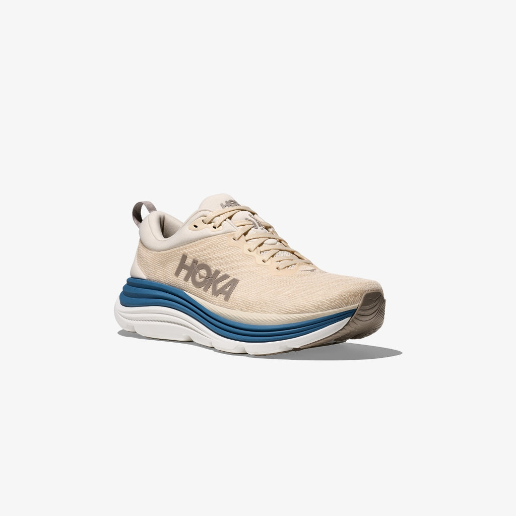 Stability without sacrificing comfort. Forget what you thought you knew about stability shoes. The Gaviota 5’s new stabilizing H-Frame™ has allowed us to implement softer foams than ever before. Delivering inherent stability without compromising cushioning, we’ve paired our intuitive H-Frame base with a breathable creel jacquard upper, ultra-plush collar, and Bondi-level cushioning to deliver that signature HOKA ride.