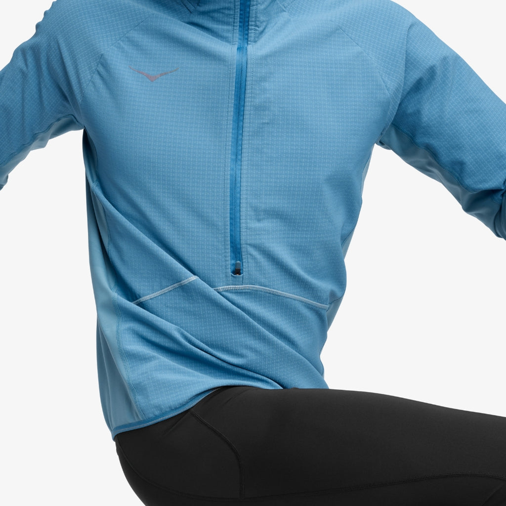 Meet a half zip that delivers a whole lotta protection. Coated with a water-resistant finish to shield from the elements, we’ve lined our woven outer material with soft micro grid back fleece and paneled in stretch knit through the arms and sides for maximal movement. Equipped with internal mitts to keep you warm when logging those crack-of-dawn miles, we’ve enlisted a two-way zipper for ventilation. You’ll also find a stealthy chest pocket to secure keys/cards and back pocket for stashing discarded beanies