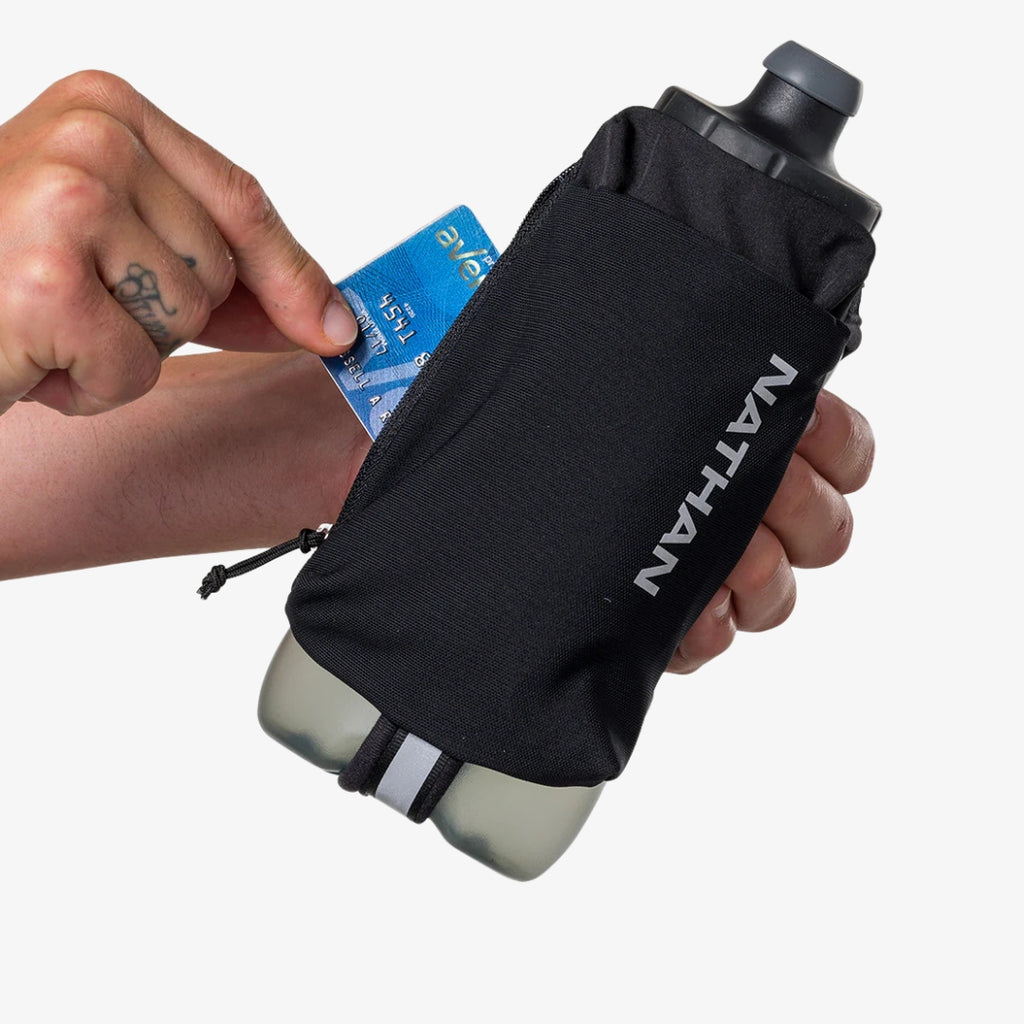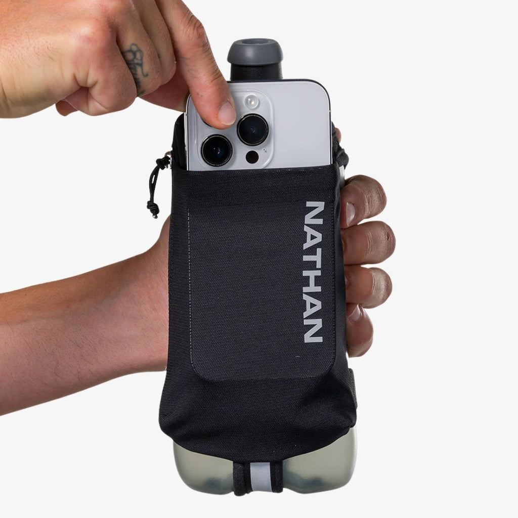 The second-gen SpeedDraw™ 22oz Flask features an updated ergonomic, no-slip grip and easy-squeeze design. The updates include a power mesh pocket that fits most smartphones and a zippered pocket for valuables.