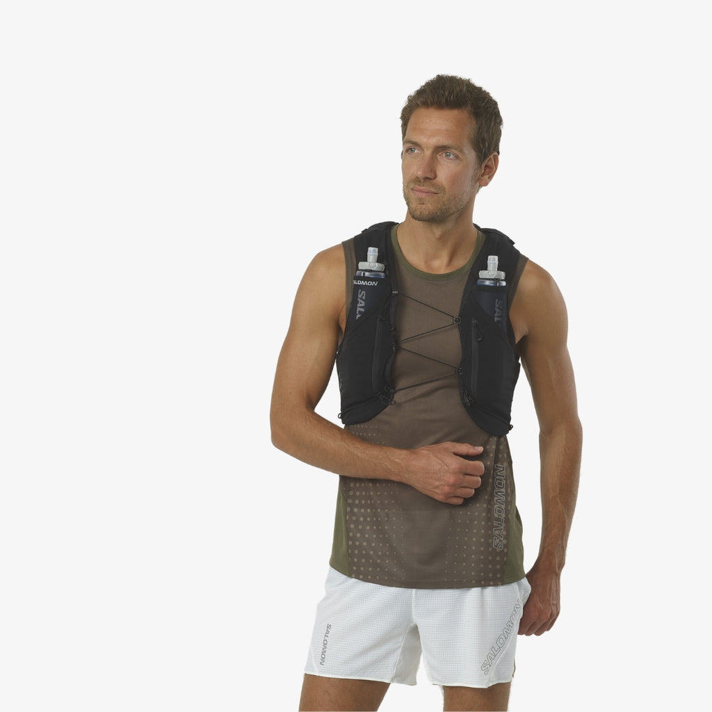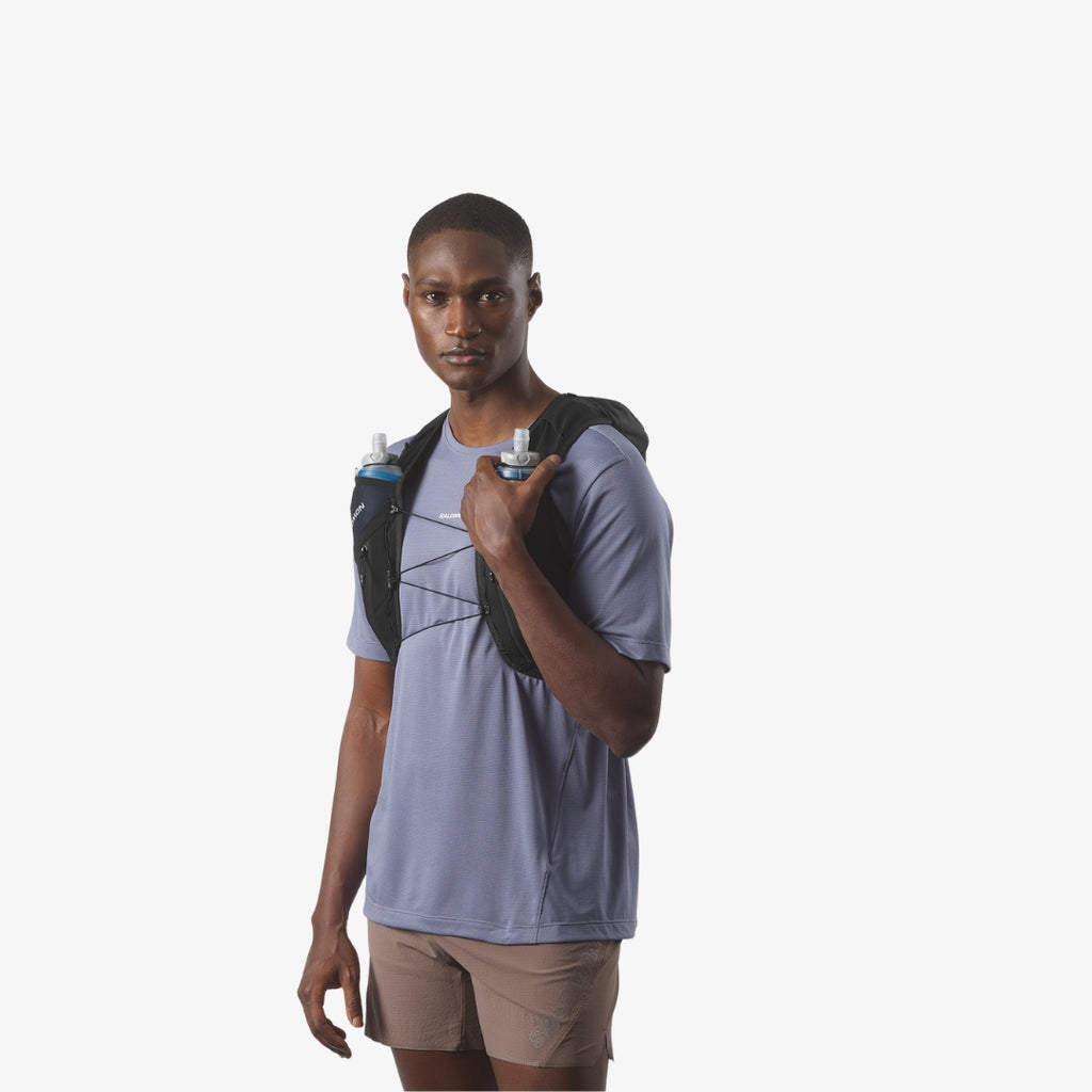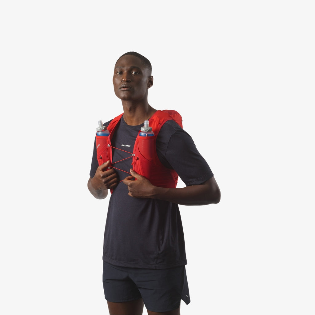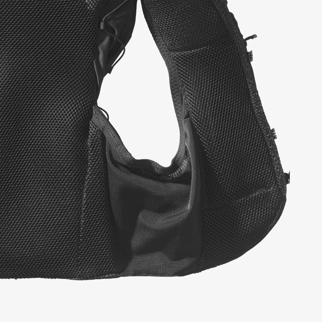 - 2 front flask pockets: Designed to fit Salomon soft flasks, these front pockets limit bouncing. Top elastic loops secure your flasks and keep them ready to drink.