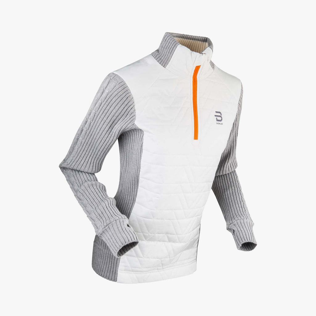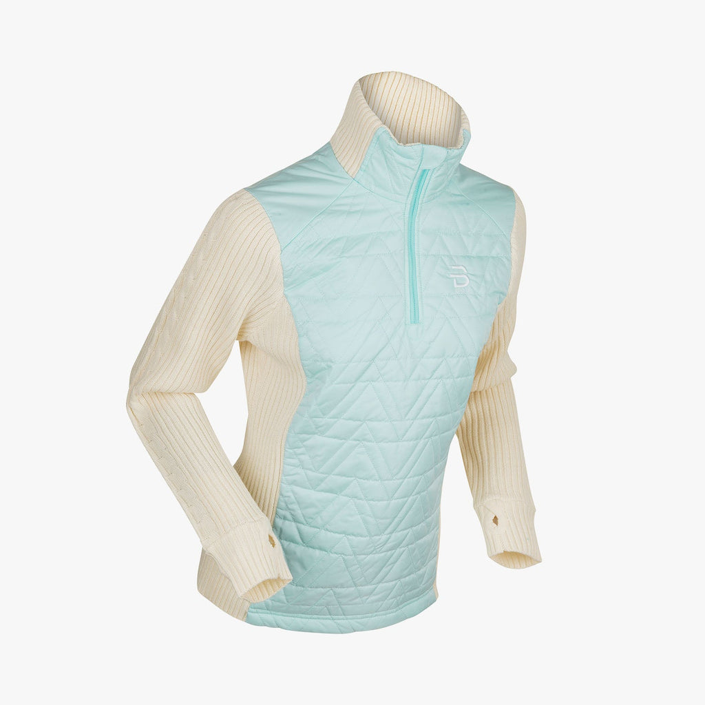 Half Zip Comfy Wmn is a wool sweater that is the perfect choice for before and after workouts on cold days. It comes in a wonderful wool blend, with a high, zippered collar for extra comfort. A lining in the front provides good insulation in cool weather. It is an all-round sweater that is ideal for both exercise and leisure.
