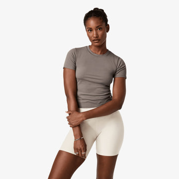 Crafted in a new premium Modal fabric, the sustainable stretch rib knit and effortless high-hip fit of the Pose Fitted Tee has stretch and timeless comfort. Great for layering in and out of the studio.